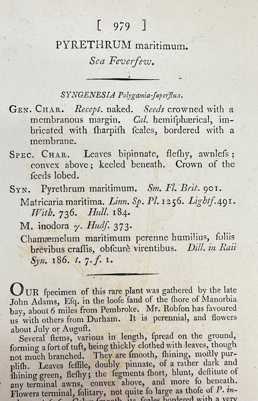 Antique Print - James Sowerby - Pyrethrum Maritimum - Sea Feverfew - F1