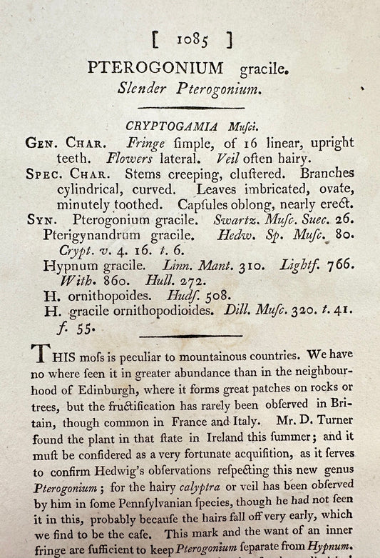 Antique Print - James Sowerby - Pterogonium Gracile - Slender Pterogonium - F1