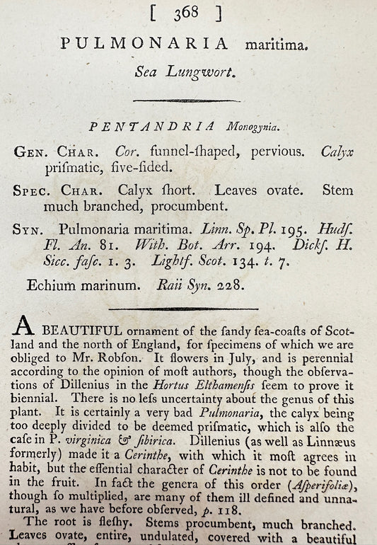 Antique Print - James Sowerby - Pulmonaria Maritima - Sea Lungwort - F1