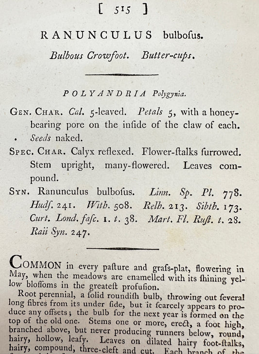 Antique Print - James Sowerby - Ranunculus Bulbofus - Bulbous Crowfoot - F1