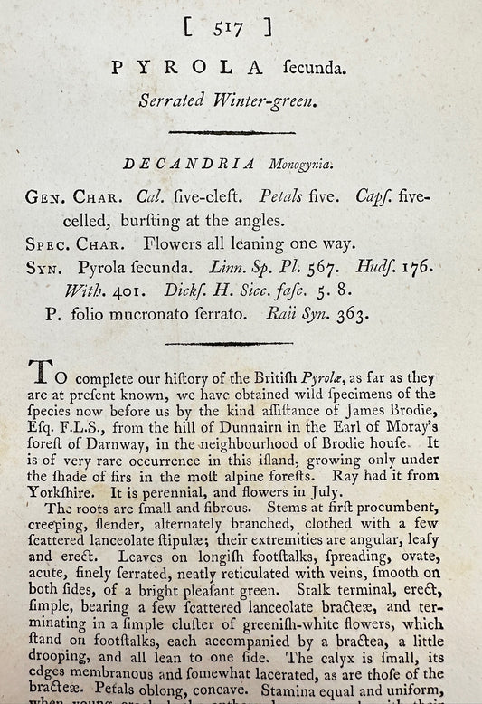 Antique Print - James Sowerby - Pyrola Fecunda - Serrated Winter-green - F1