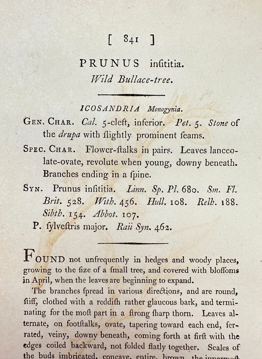 Antique Print - James Sowerby - Prunus Insititia - Wild Bullace-tree - F1