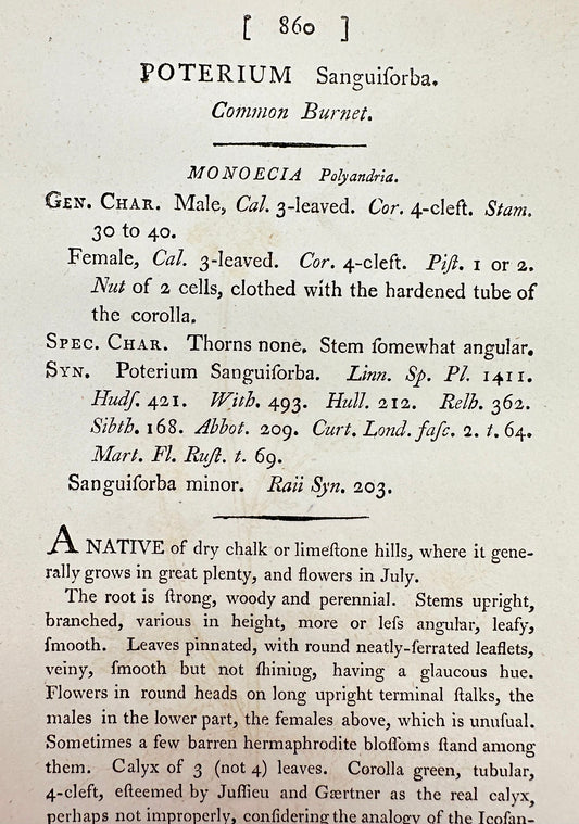 Antique Print - James Sowerby - Poterium Sanguisorba - Common Burnet - F1
