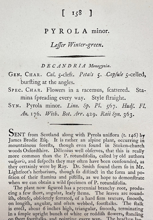 Antique Print - James Sowerby - Pyrola Minor - Leffer Winter-green - F1