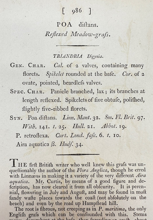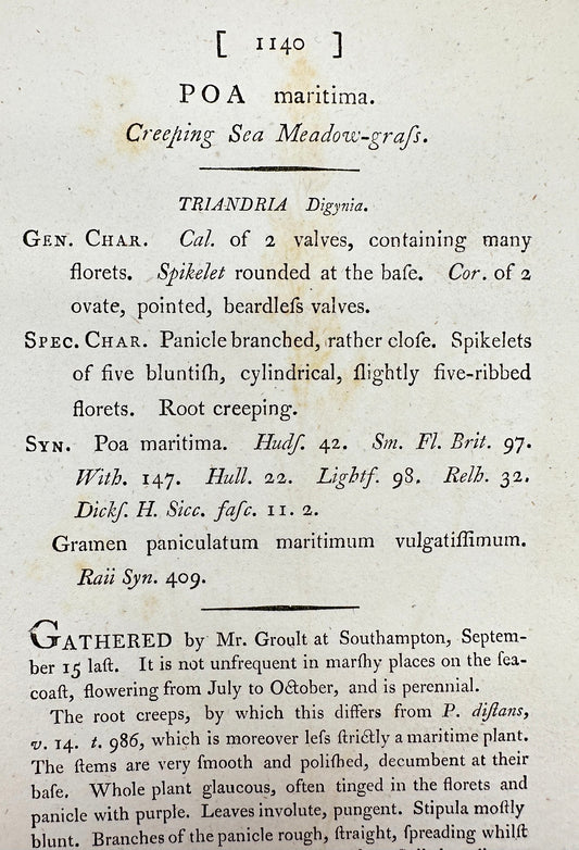 Antique Print - James Sowerby - Poa Maritima - Seashore Bluegrass - F1