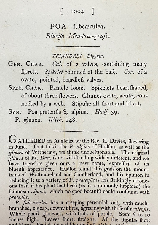 Antique Print - James Sowerby - Poa Fubcærulea - Blueish Meadow-grafs - F1