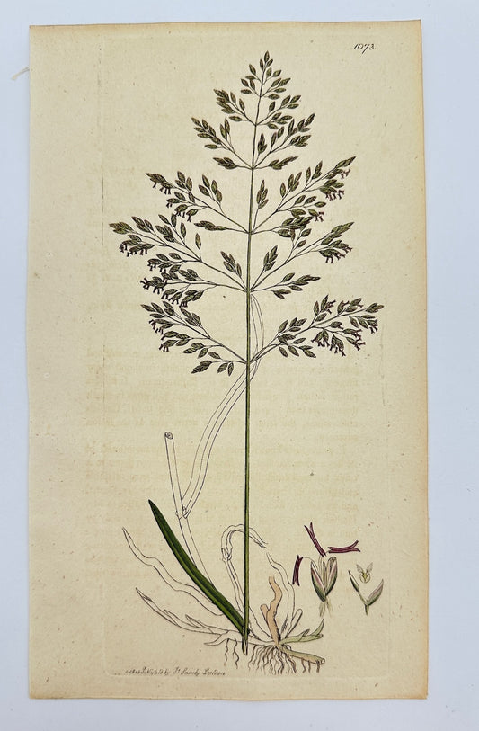Antique Print - James Sowerby - Poa Pratenfis - Smooth-ftalked Meadow-grafs - F1