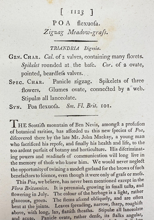 Antique Print - James Sowerby - Poa Flexuosa - Zigzag Meadow-grass - F1