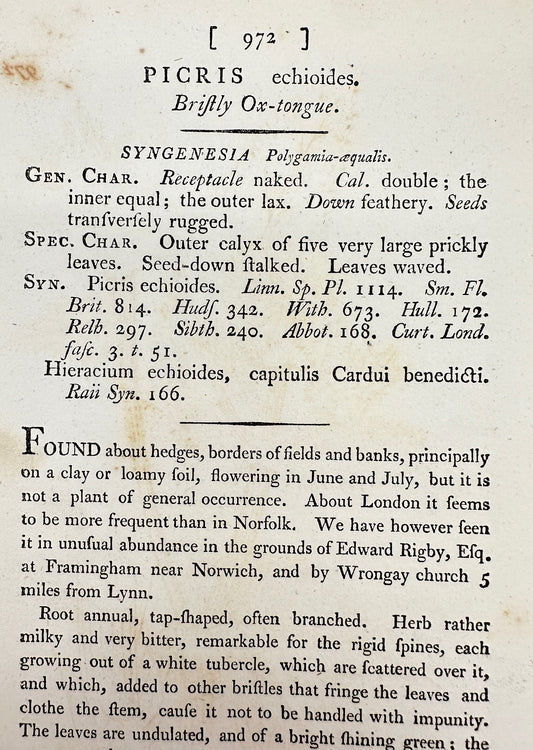 Antique Print - James Sowerby - Picris Echioides - Briftly Ox-tongue - F1