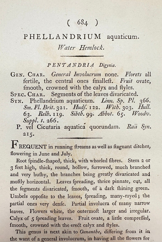 Antique Print - James Sowerby - Phellandrium Aquaticum - Water Hemlock - F1