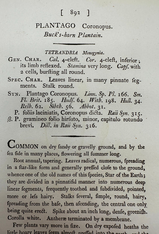 Antique Print - James Sowerby - Plantago Coronopus - Buck's-horn Plantain - F1