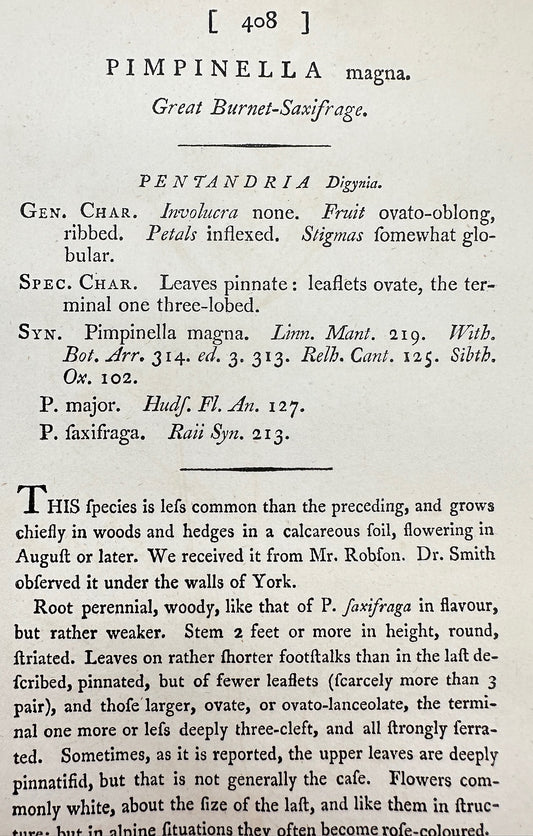 Antique Print - James Sowerby - Pimpinella Magna - Great Burnet-Saxifrage - F1