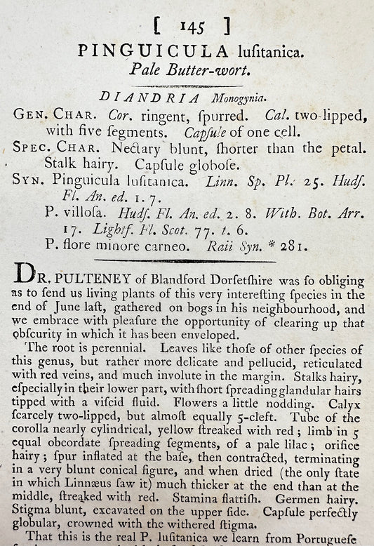 Antique Print - James Sowerby - Pinguicula Lusitanica - Pale Butter-wort - F1