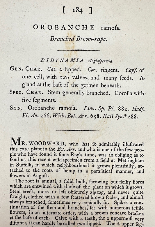 Antique Print - James Sowerby - Orobanche Ramofa - Branched Broom-rape - F1