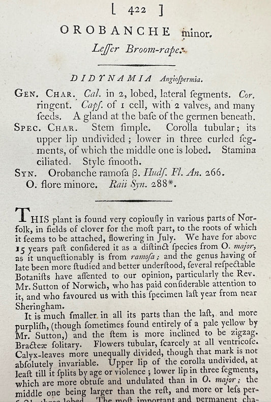 Antique Print - James Sowerby - Orobanche Minor - Leffer Broom-rape - F1