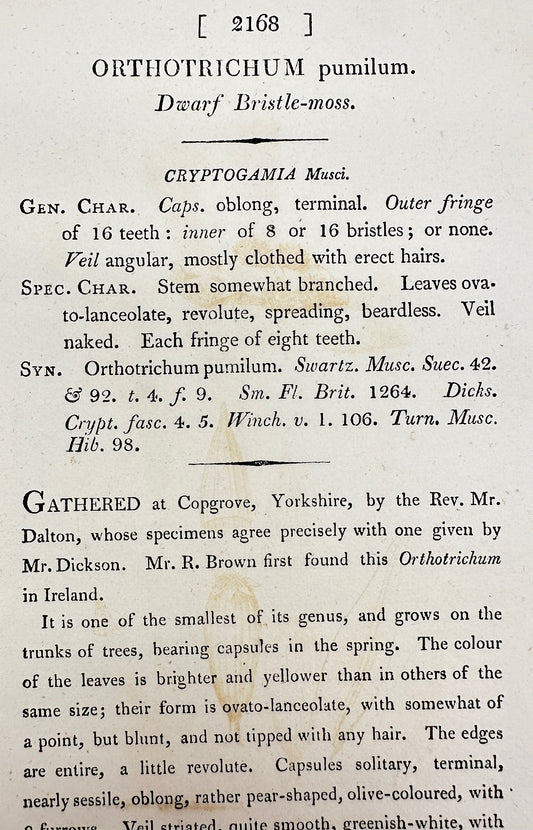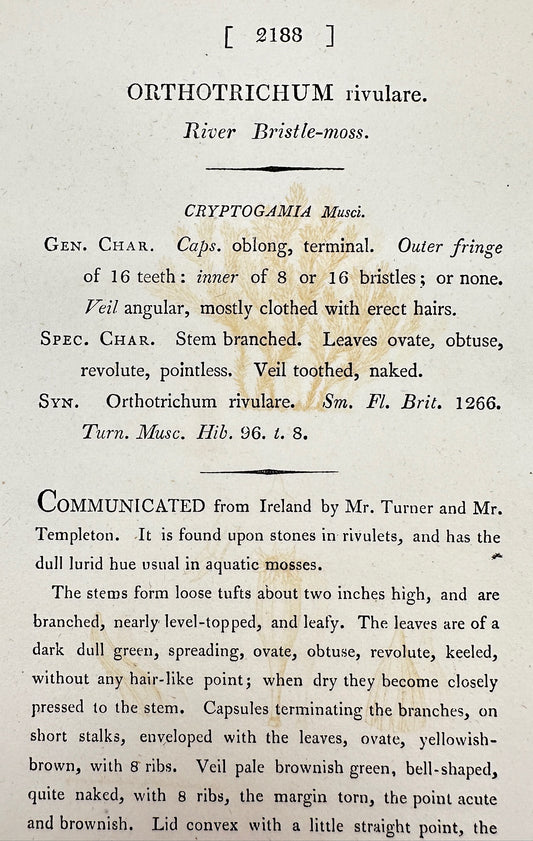 Antique Print - James Sowerby - Orthotrichum Rivulare - River Bristle-moss - F1