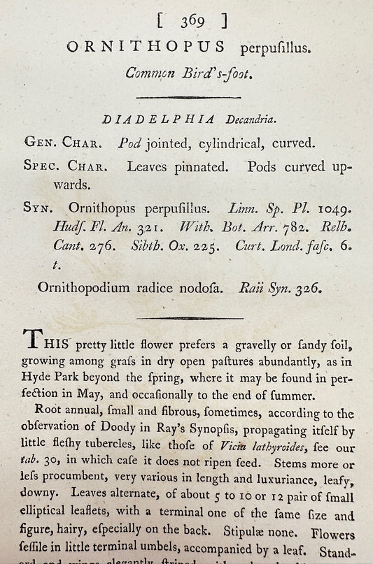 Antique Print - James Sowerby - Ornithopus Perpufillus - Common Bird's-foot - F1