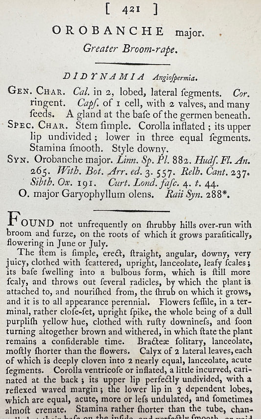 Antique Print - James Sowerby - Orobanche Major - Greater Broom-rape - F1