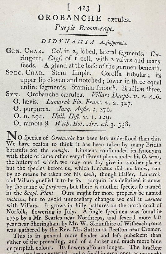Antique Print - James Sowerby - Orobanche Cærulea - Purple Broom-rape - F1