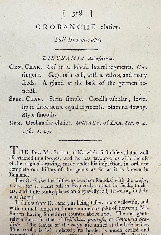 Antique Print - James Sowerby - Orobanche Elatior - Tall Broom-rape - F1