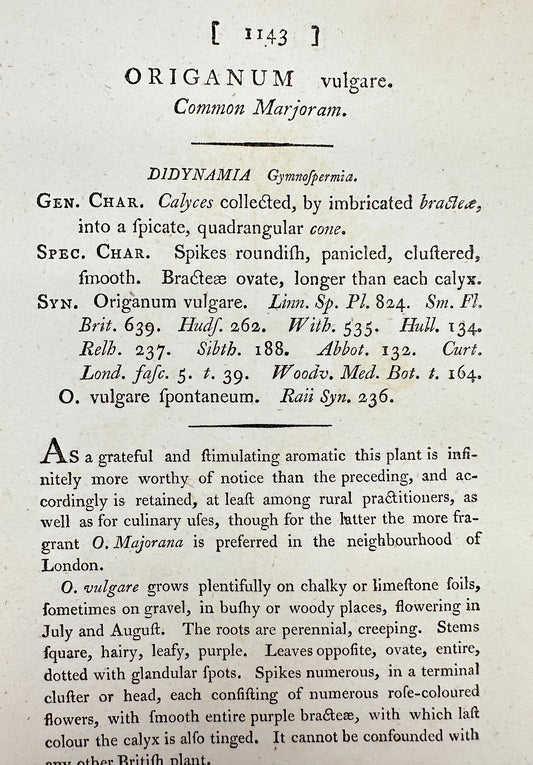 Antique Print - James Sowerby - Origanum Vulgare - Common Marjoram - F1