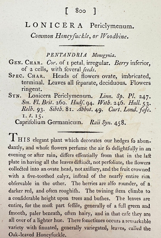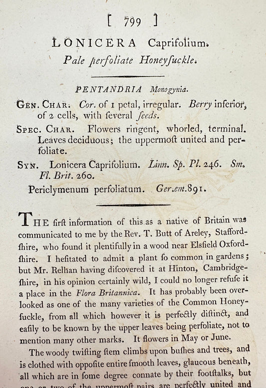 Antique Print - James Sowerby - Lonicera Caprifolium - Italian Woodbine - F1