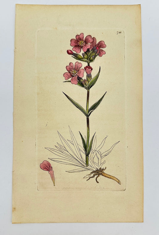 Antique Print - James Sowerby - Lychnis Viscaria - Sticky Catchfly - F1