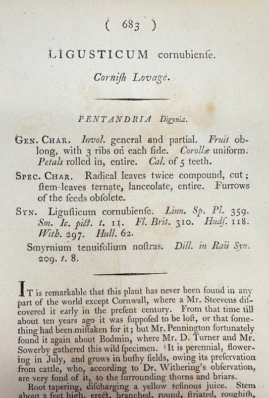 Antique Print - James Sowerby - Ligusticum Cornubiense - Cornish Lovage - F1