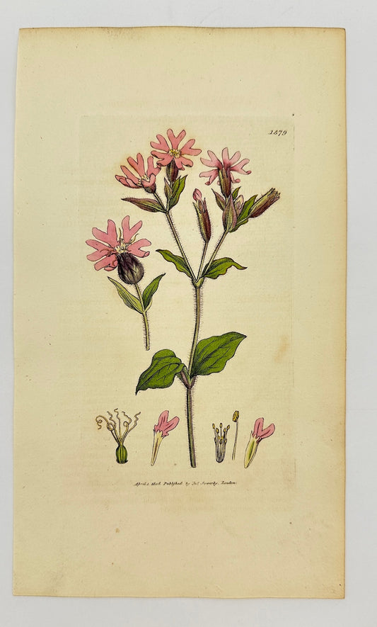 Antique Print - James Sowerby - Lychnis Dioica: Flore Rubro - Red Campion - F1
