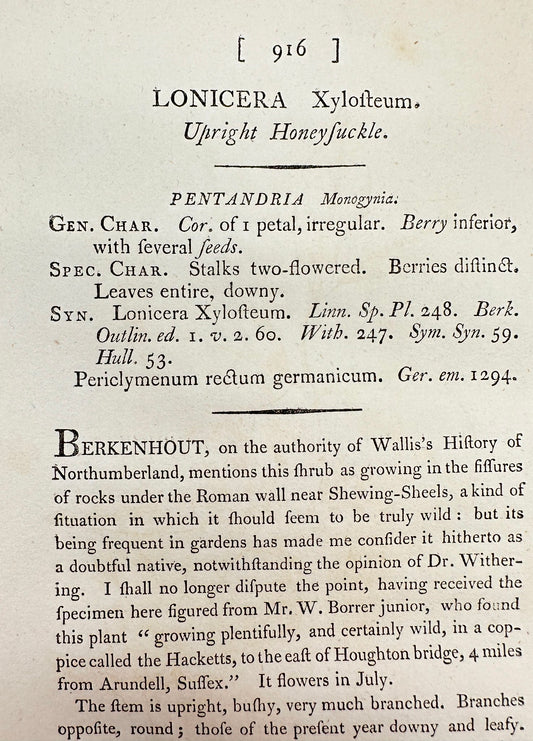 Antique Print - James Sowerby - Lonicera Xylosteum - Upright Honeysuckle - F1
