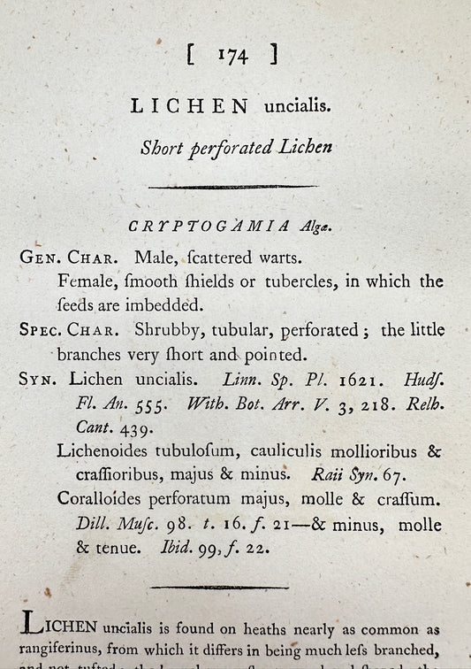 Antique Print - James Sowerby - Lichen Uncialis - Short Perforated Lichen - F1