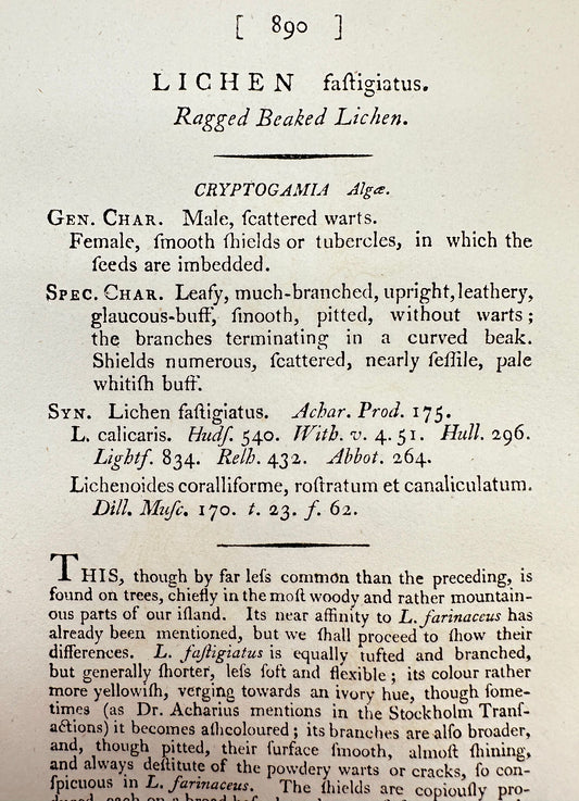Antique Print - James Sowerby - Lichén Faftigiatus - Ragged Beaked Lichen - F1