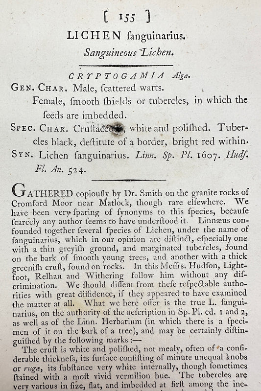 Antique Print - James Sowerby - Lichen Sanguinarius - Sanguineous Lichen - F1