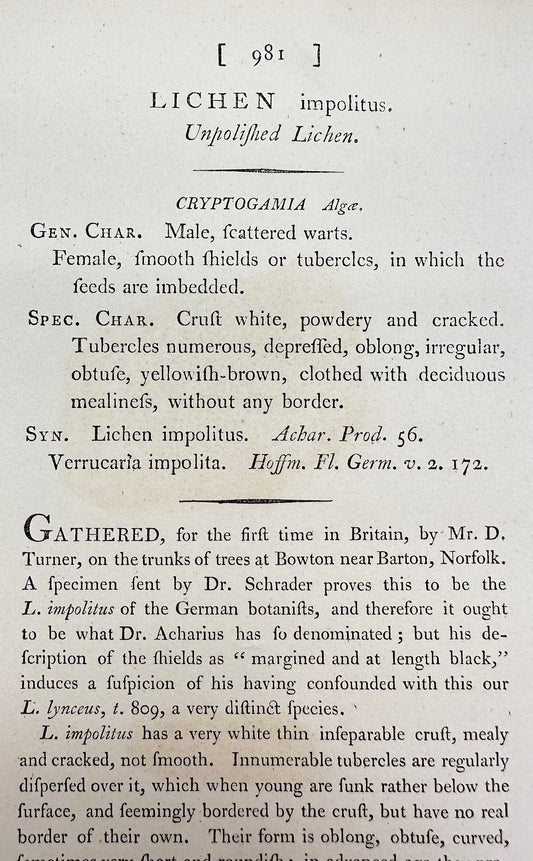 Antique Print - James Sowerby - Lichen Impolitus - Unpolished Lichen - F1