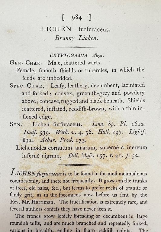 Antique Print - James Sowerby - Lichen Griffithii - Griffith's Lichen - F1