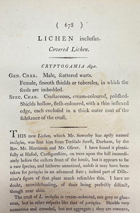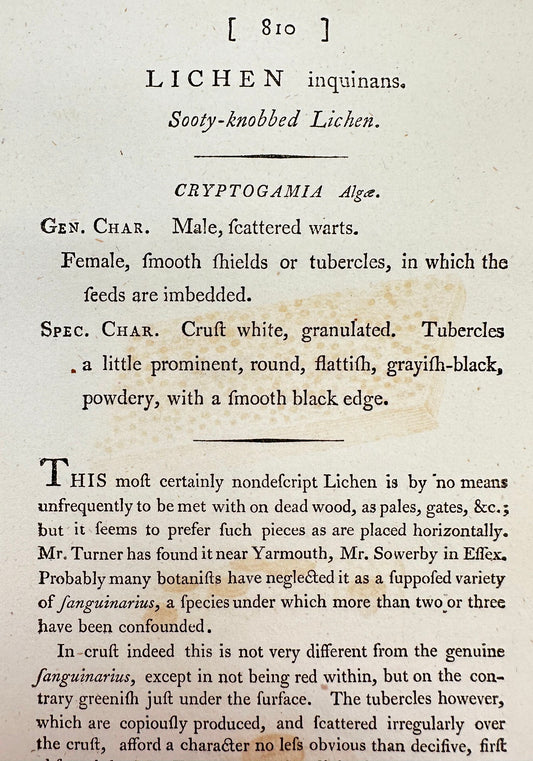 Antique Print - James Sowerby - Lichen Inclufus - Covered Lichen - F1