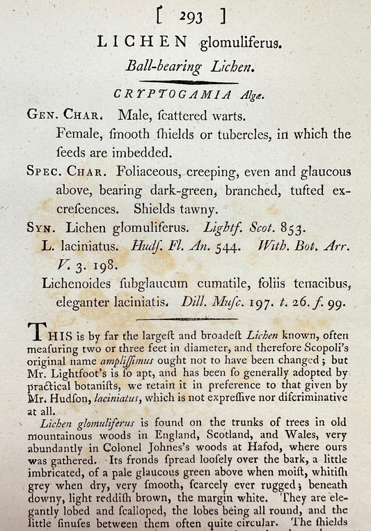 Antique Print - James Sowerby - Lichen Glomuliferus - Ball-bearing Lichen - F1