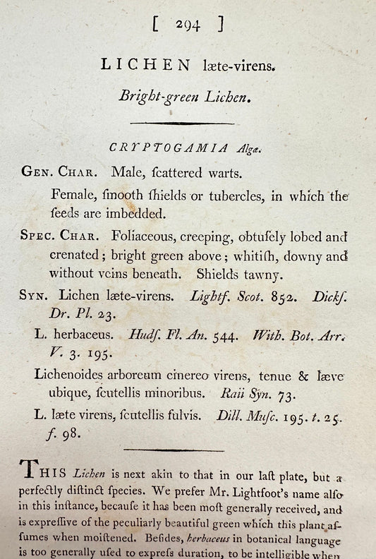 Antique Print - James Sowerby - Lichen Læte-virens - Bright-green Lichen - F1