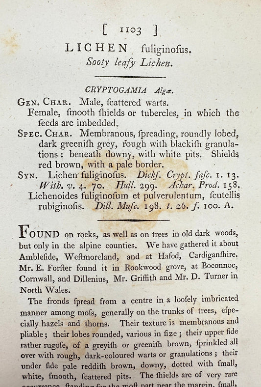 Antique Print - James Sowerby - Lichen Fuliginofus - Sooty Leafy Lichen - F1