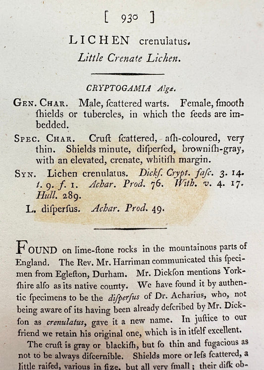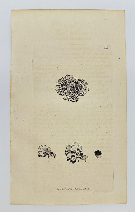 Antique Print - James Sowerby - Lichen Crenulatus - Little Crenate Lichen - F1