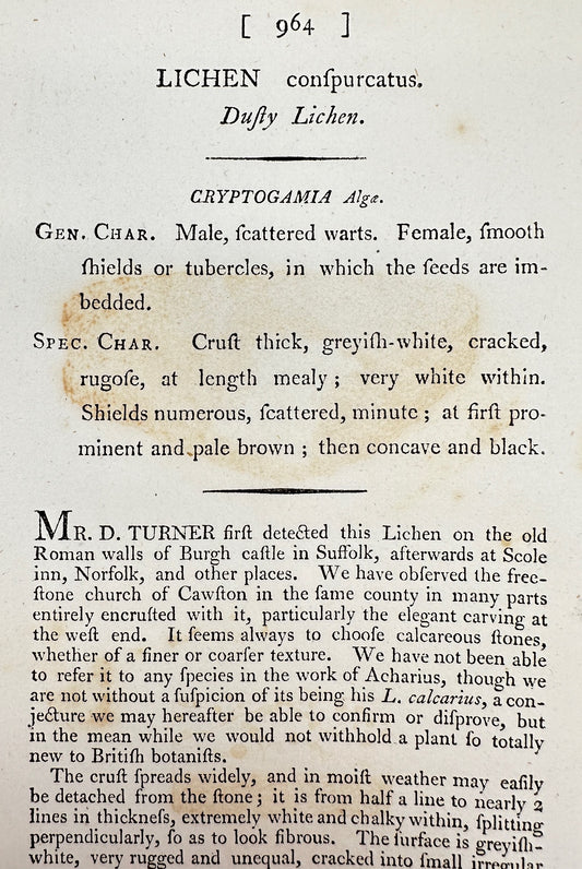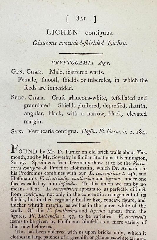 Antique Print - James Sowerby - Lichen Contiguus - Contiguous Lichen - F1