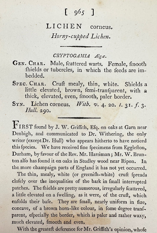 Antique Print - James Sowerby - Lichen Corneus - Horny-cupped Lichen - F1