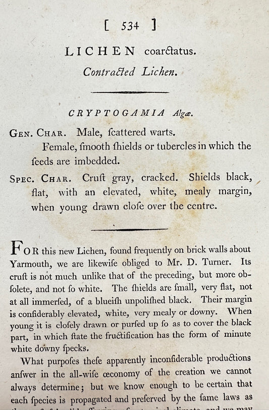 Antique Print - James Sowerby - Lichen Coarctatus - Contracted Lichen - F1