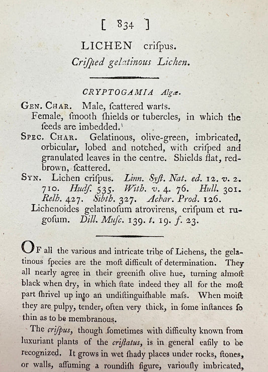 Antique Print - James Sowerby - Lichen Crispus - Criſped gelatinous Lichen - F1