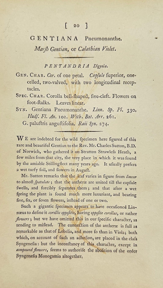 Antique Print - James Sowerby - Gentiana Pneumonanthe - Marsh Gentian - F1