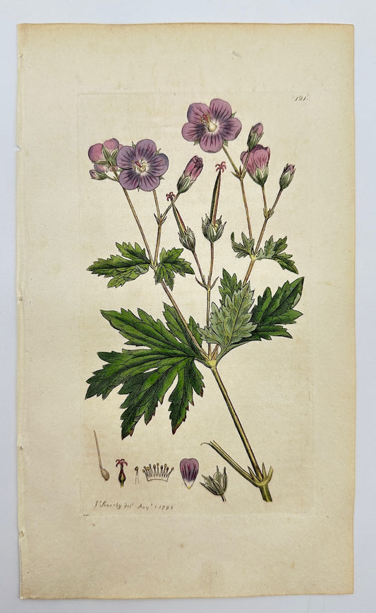 Antique Print - James Sowerby - Geranium Molle - Dove's-foot Cranesbill - F1