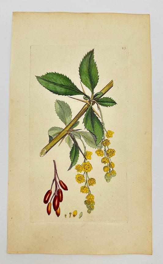 Antique Print - James Sowerby - Berberis Vulgaris - Common Barberry - F1