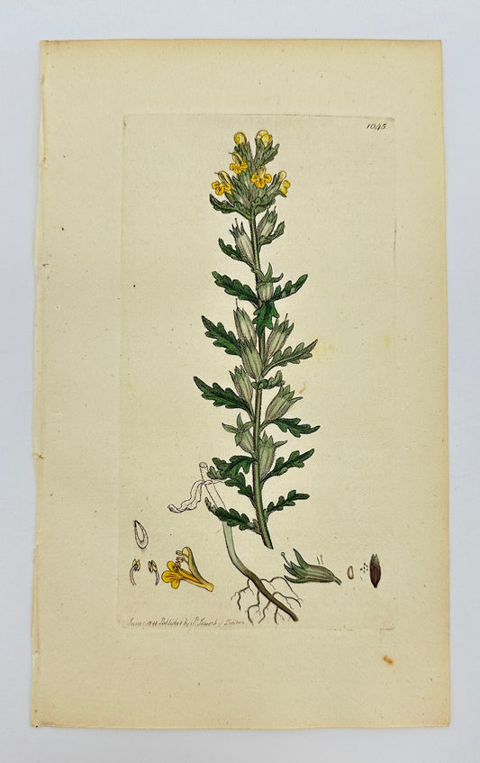 Antique Print - James Sowerby - Bartsia Vifcofa - Yellow Vifcid Bartfia - F1