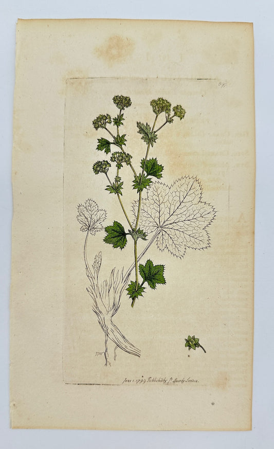 Antique Print - James Sowerby - Alchemilla Vulgaris - Lady's Mantle - F1