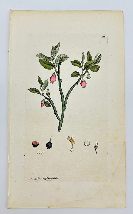 Antique Botanical Print - James Sowerby - Vaccinium Myrtillus - Bilberry - F1